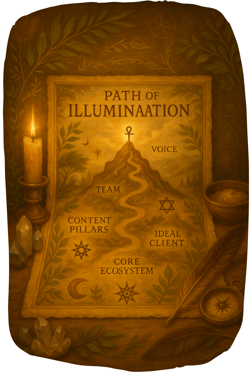 After you’ve digested the Codex, we reconnect to map your implementation strategy together — choosing the best platforms for your offers, outlining user experience, and anchoring a sustainable plan that honors your energy.